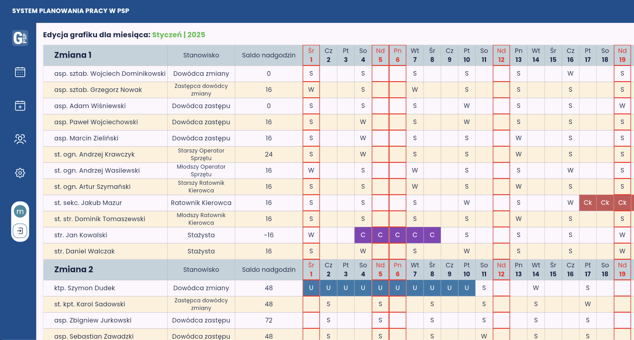 📱 Aplikacja mobilna na Android oraz Iphone – pełna kontrola zawsze pod ręką! Nasza aplikacja pozwala strażakom na szybki dostęp do grafiku, powiadomień i zmian w czasie rzeczywistym. Dzięki automatycznym alertom o dyżurach i zastępstwach strażacy są zawsze na bieżąco. Intuicyjny interfejs ułatwia zarządzanie czasem pracy, niezależnie od miejsca i sytuacji. Pobierz aplikację i bądź zawsze gotowy! 🚒🔥